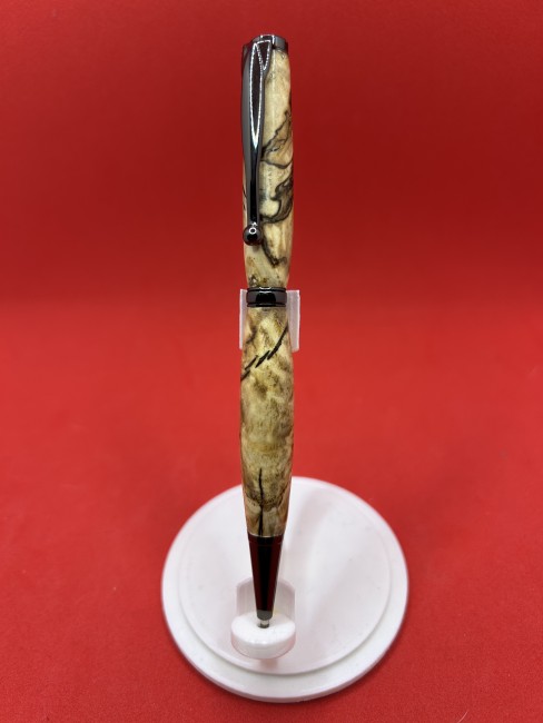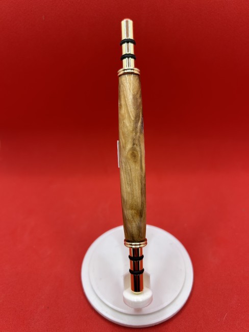 Maîtrise du Tournage sur Bois : Utilisation du tour à bois pour sculpter le corps du stylo avec une précision millimétrée, mettant en valeur les nuances naturelles du bois.