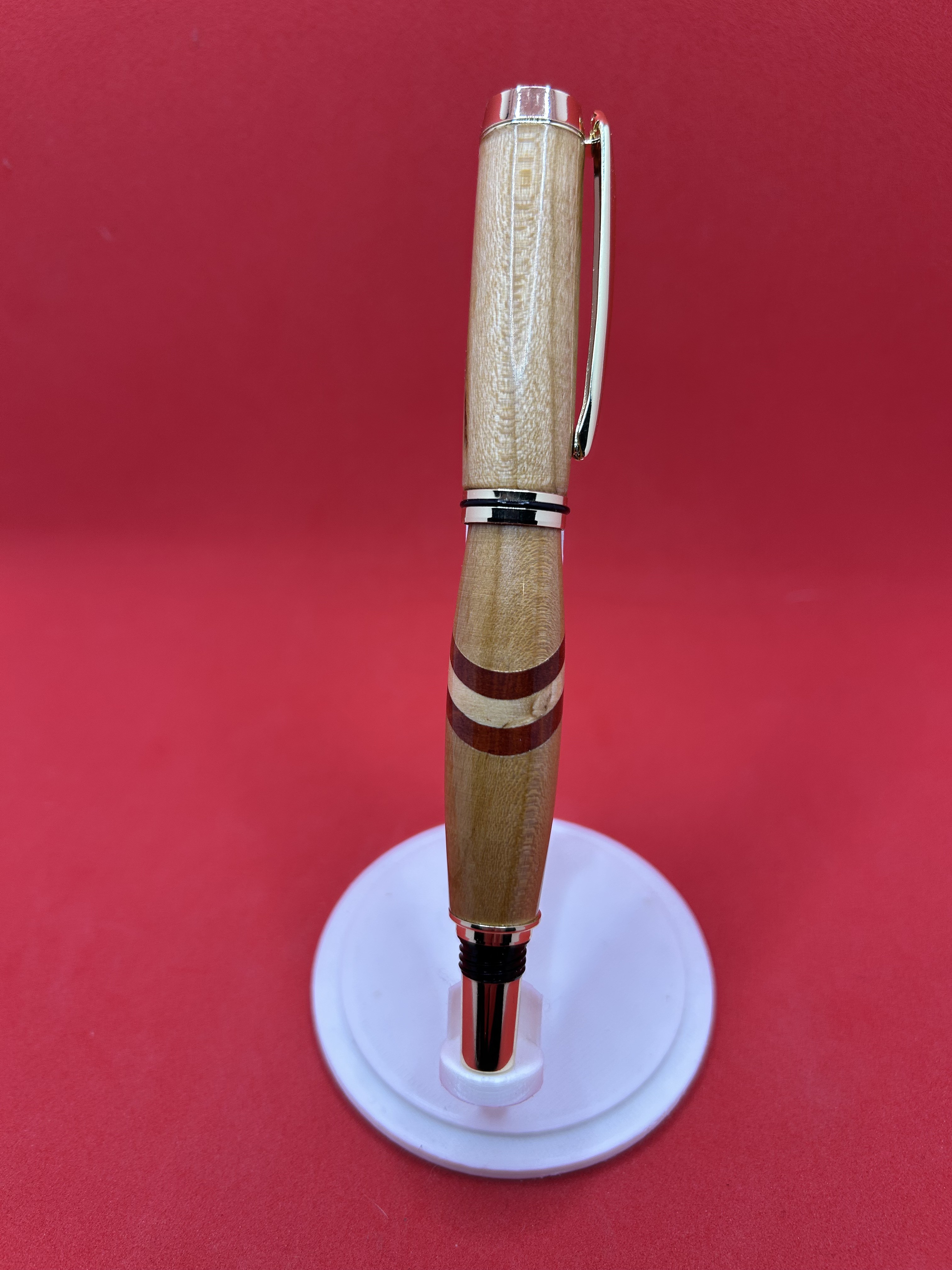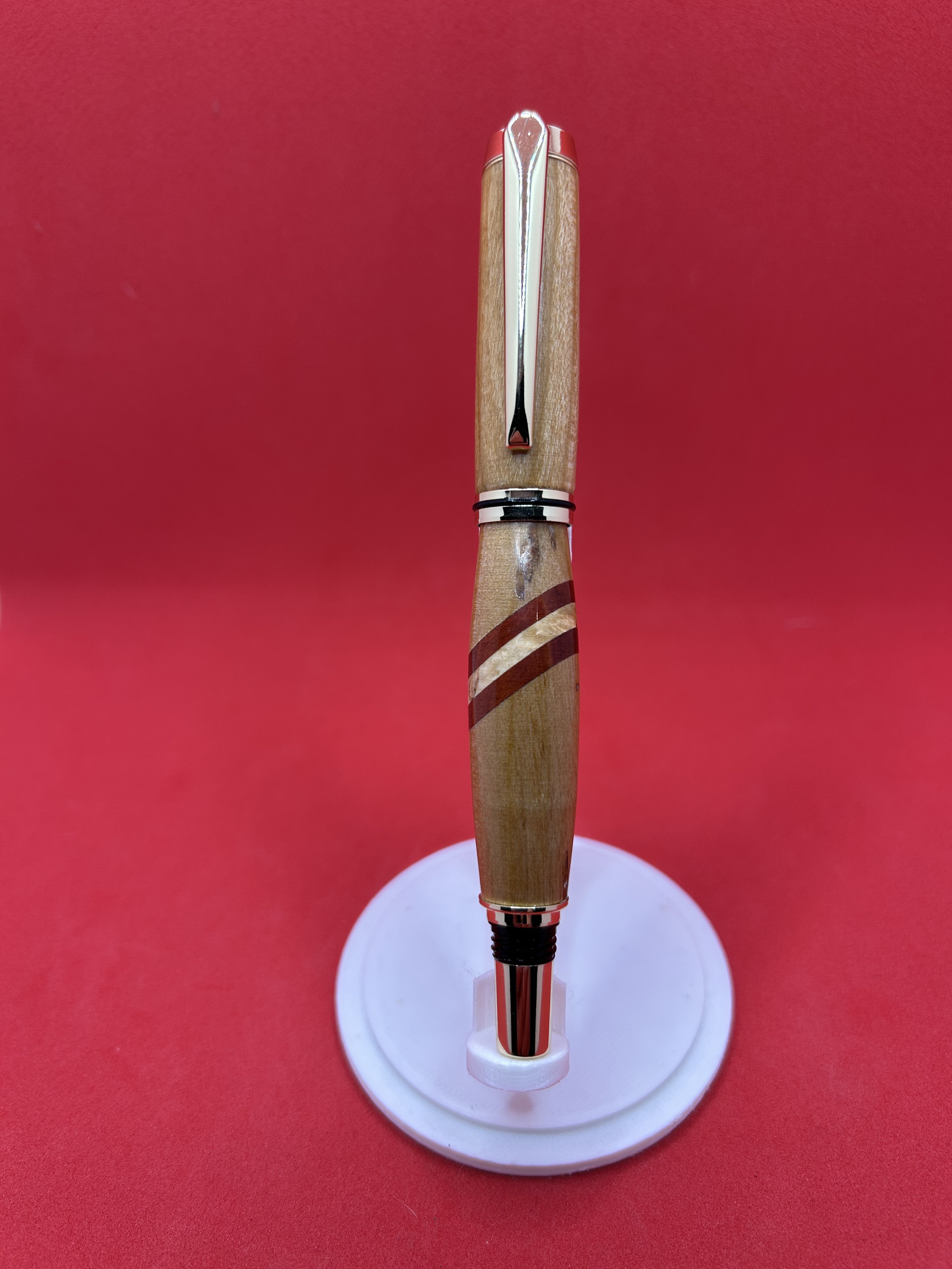 Voici un magnifique roller en bois de cerisier avec insert en padouk et bouleau madré, l'encre est noire.