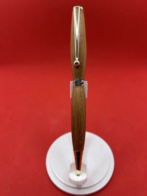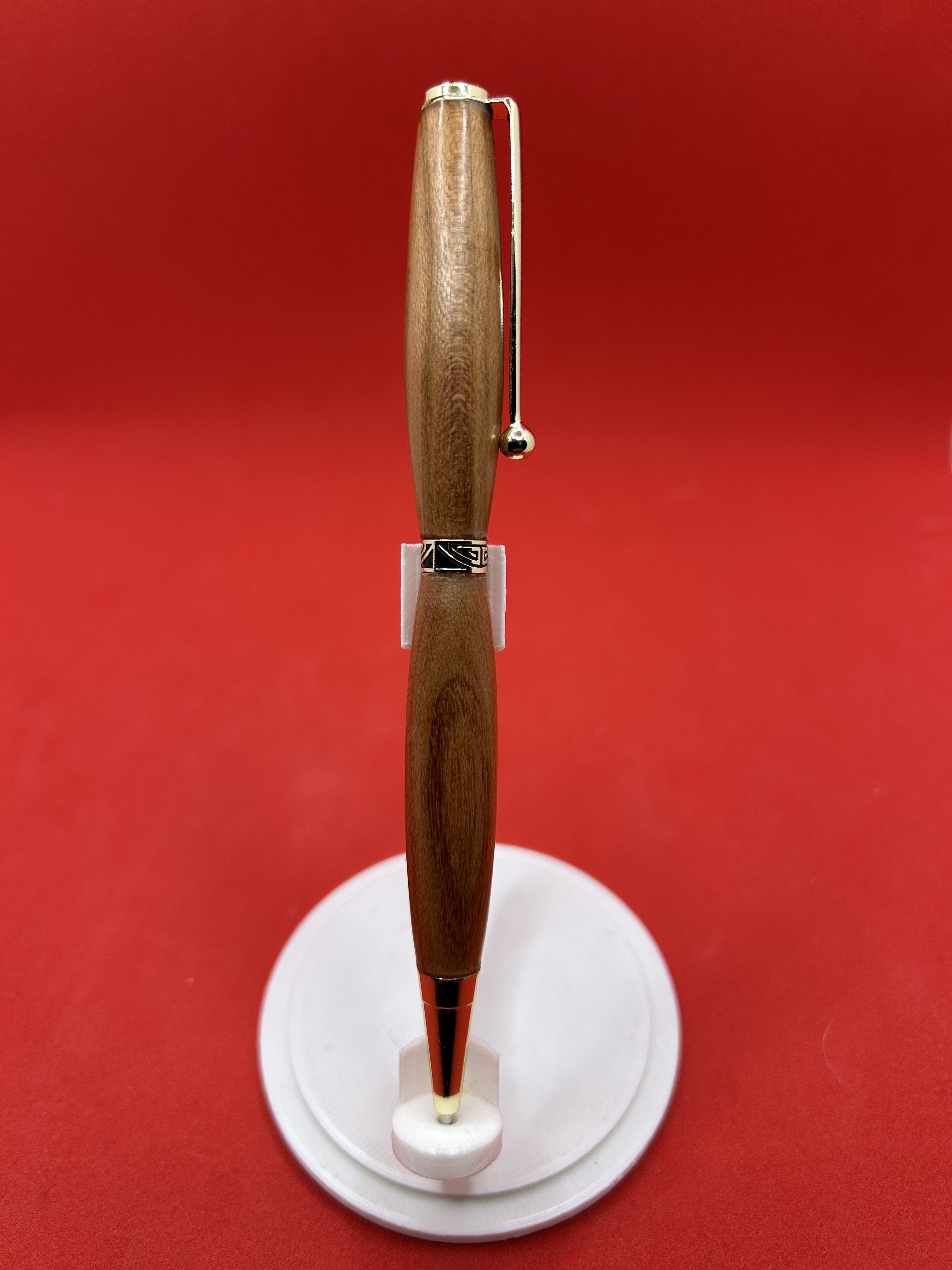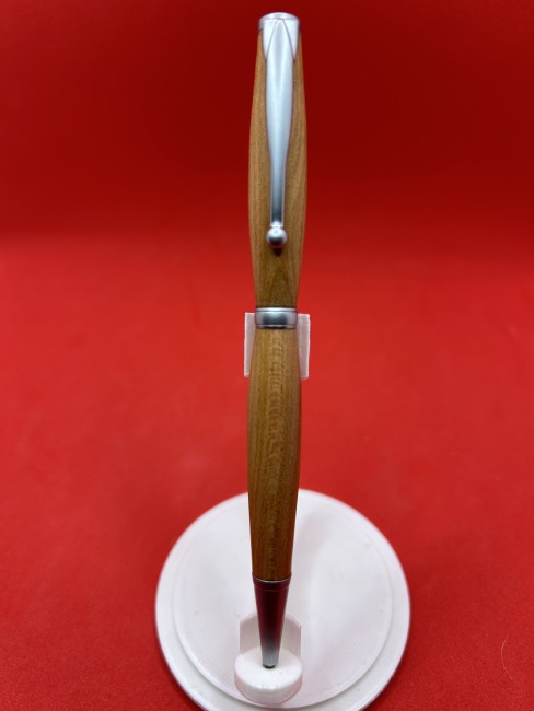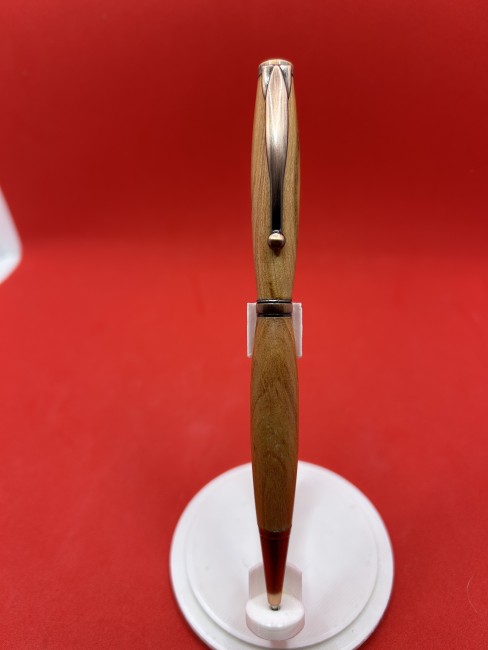 Stylo en bois de mirabellier de Moselle, mécanisme quart tournant et encre noire.