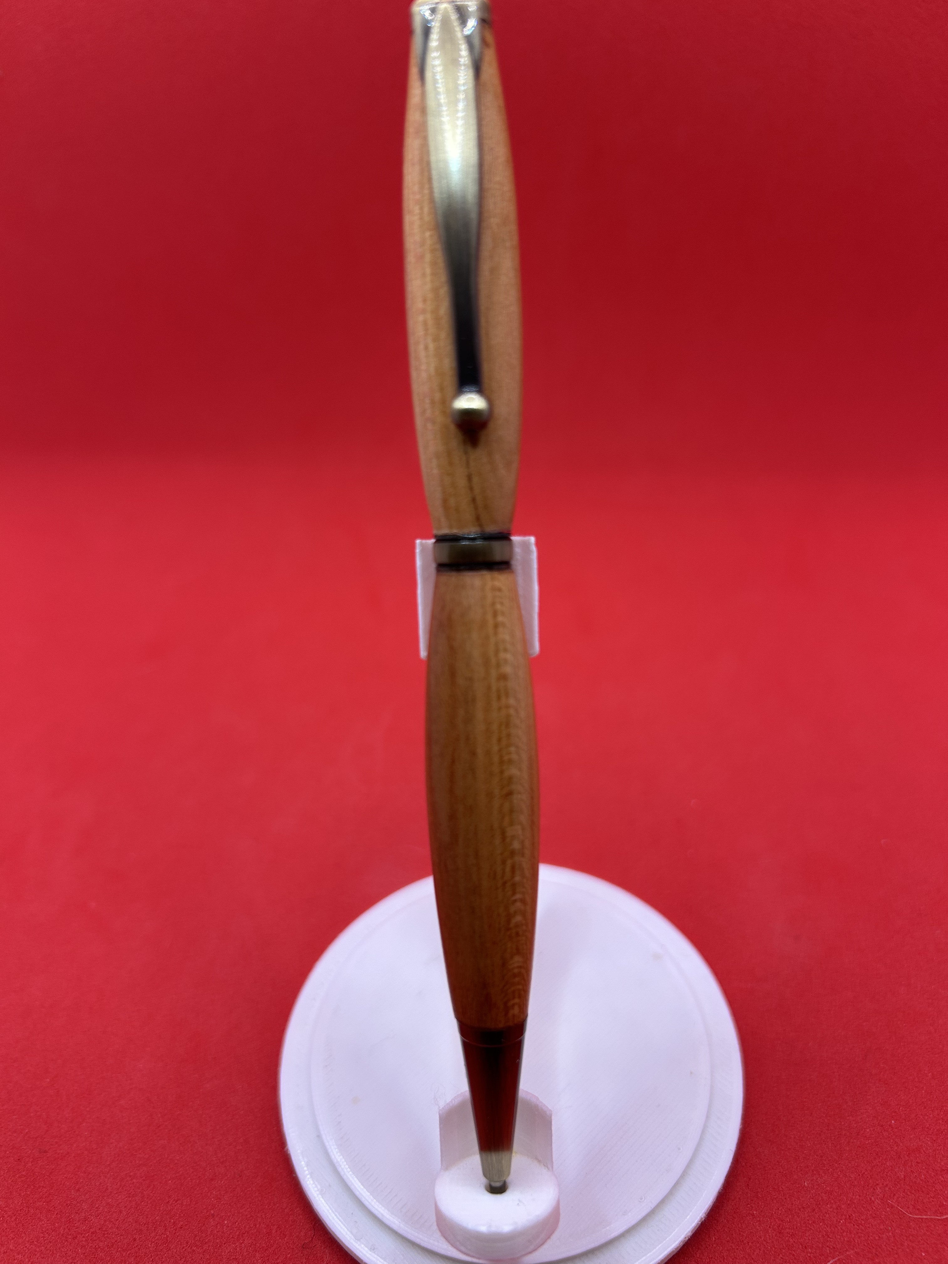 Stylo en bois de mirabellier de Moselle, mécanisme quart tournant et encre noire.
